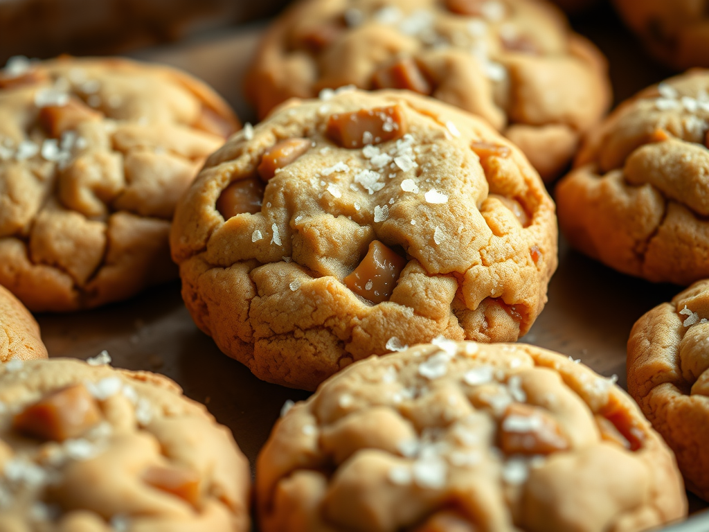I found a chocolate chip recipe YEARS ago. It was so good. They have cooked edges and if you eat them right out of the oven (which we do), the centers are like cookie dough lava and it is amazing!! In case this isn’t obvious, blow on them a bit before eating, otherwise, the lava is real. After they cool, the center finishes cooking and it is the best cooking I have ever eaten. Anyway, I made these and my daughter loved them and my husband said you should add toffee to the mix, which I did the next time. Another winner in our house. After that, I found Caramel bits at the grocery. Not caramel chips, but actual balls of chewy caramel. I, of course grabbed the bag and when I got home, Salted Caramel Cookies were born. My daughter fell IN LOVE with these. If I’m making cookies, these are the ones she wants. The kids in the youth group at church are standing at the table when I bring them in for potlucks. I have to make a double batch of these so that they aren’t gone before the meal starts. The little caramel bits create this amazing chew to the cookie and the flake salt on top….YUM!!!
